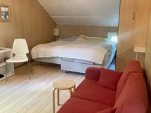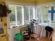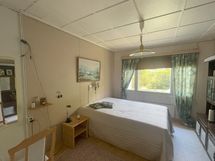 Sisääntuloeteisen päälle voi rakentaa esimerkiksi lasiseinäisen terassin. Terassilta voi ihailla ympärillä avautuvaa luontoa, kuunnella luonnon ääniä ja nauttia päivä, tai ilta-auringosta. Kiinteistö myydään kalustettuna tai ilman kalusteita tarjousten pohjalta. Sopiva kohde remonttitaitoiselle.