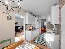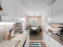 - Jääkaappi/pakastin, astianpesukone, kaapistot, keraaminen liesi, liesituuletin, kivitasot.