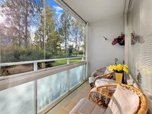 - sisään vedetty, lasitettu. Parvekkeen suunta: länsi