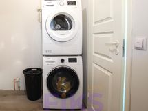 Kodinhoitohuoneessa on pyykinpesukone ja kuivausrumpu, jotka kuuluvat kauppaan.