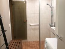 - Suihku, Suihkuseinä, Pesukone, Allaskaappi, Laattalattia, Halogeenivalot, Laattaseinä, Erillinen WC, Lattialämmitys,