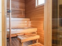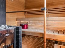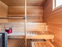 Pesutilat on uudistettu vuonna 2012 – nykyaikaiset ratkaisut ja miellyttävät materiaalit tekevät arjen askareista nautinnon. Saunan puukiuas tarjoaa pehmeät ja rentouttavat löylyt, jotka huuhtelevat kiireet pois. Saunomisen jälkeen takkahuone kutsuu viihtymään. Ja mikä parasta, siitä avautuu käynti isolle, katetulle terassille, joka kylpee etelän auringossa. Terassi tarjoaa oman suojaisan paikkansa rentoutumiselle ja yhdessäololle.