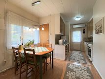 - Jääviileäkaappi, pakastekaappi pieni, sähköliesi n. 2017, liesituuletin, astianpesukone, kaapistot. Paljon kaappitilaa.