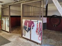 Pihapiirissä navetta, jossa karsinat kahdelle hevoselle, useita varastoja sekä iso kesähuone navetan vintillä. Pihasauna jonka yhteydessä oma pieni lampi jossa voi pulahtaa. Valaistu salaojitettu ratsastuskenttä 22x40. Metsää jossa mahdollisuus isolle metsätarhalle. Sekä autokatos kahdelle autolle.