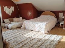 Päätalo pintaremontoitu, kylpyhuone/kodinhoitohuone remontoitu kolme vuotta sitten. Alakerta iso avoin tila johon saa halutessaan tehtyä yhden makuuhuoneen lisää. Yläkerrassa kaksi huonetta jossa toisen huoneen yhteydessä oma vessa/suihku.