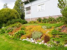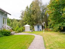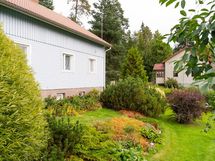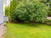 Aurinkoinen tontti ja hyvin hoidettu piha omenapuineen ja marjapensaineen kutsuvat viihtymään ulos keväästä pitkälle syksyyn. Lapsiystävällinen ympäristö tarjoaa turvalliset puitteet leikkiin ja ulkoiluun.