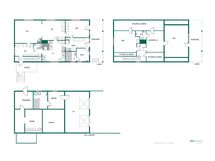 Kph: suihku. Sauna: sähkökiuas. Kellarin sauna: puukiuas, vesipata, suihku. 2x erillinen wc: wc 1: peilikaappi, allaskaappi, wc 2: suihkukaappi, suihku, lavuaari, peilikaappi. Khh: pesukoneliitäntä, lavuaari, kaapistot.