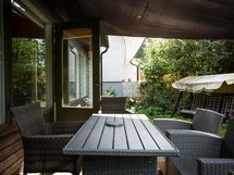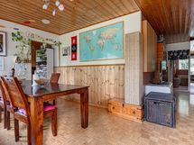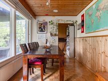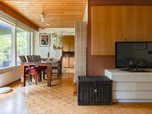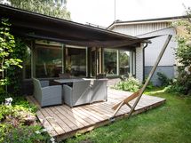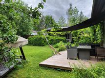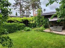 Pohjaratkaisultaan tämä kokonaisuus on moneen tarpeeseen muuntuva. Päärakennuksessa on nykyisellään kolme makuuhuonetta ja talousrakennuksessa lisäksi yksi. Talousrakennuksessa on lähes täydellisen asunnon mukavuudet, kuten oma kylpyhuone, sauna ja erillinen wc. Varastotilaa on kattavasti autotallissa ja talousrakennuksen varastossa. Piha-alueet ovat suojaisat ja istutuksille on erinomaisesti tilaa. Katettua terassi pinta-alaa on mukavasti ja saunan polttopuille on tehty käytännöllinen katos takapihalle. Tässä kokonaisuudessa on hyvä huomioida ilmoitettua huoneistoalaa hulppeampi kokonais pinta-ala 170m2. Nämä tilat ovat käyttöasteeltaan erinomaiset ja täysin lämpimät. Kiinteistökaupan yhteydessä voidaan sopimuksen mukaan myydä myös esimerkiksi: pyykinpesukone, kuivausrumpu, asekaappi, komposti, palju, polttopuut, terassin kalusteet jne.