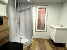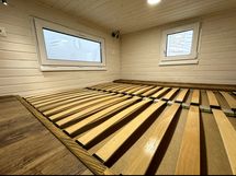 • Kylpyhuone: laattalattia ja laatoitettu märkäalue, muut seinät puuta