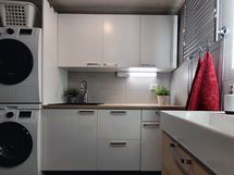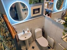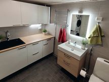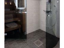 - Suihku, Suihkuseinä, Pesukone, Kuivausrumpu, Pesukonevalmius, Allaskaappi, Laattalattia, Laattaseinä, Lattialämmitys, Erillinen WC, Kosteusvahti