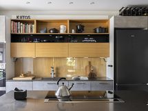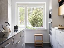 - Kaapistot, saareke, induktioliesi, saarekeliesituuletin, jääkaappi/pakastin, Mielen integr. kahvikone, kiertoilma/höryuuni, viinikaappi, astianpesukone.