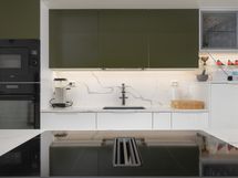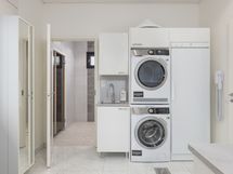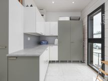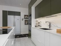 Liesi: induktio. Kylmäsäilytys: jääkaappi, pakastin. Varustus: liesituuletin, astianpesukone.