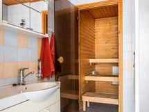 - Sauna, sähkökiuas, kylpyhuone lattialämmitys, sähkö, suihkuseinä, peilikaappi, allaskaappi, pesukoneliitäntä, kiinteät valaisimet.