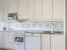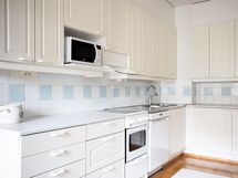 - Jääkaappipakastin Rosenlew, keraaminen liesi Rosenlew, 50 cm, liesikupu, astianpesukone Whirlpool, 6/2025, kaapistot, kiinteät valaisimet.