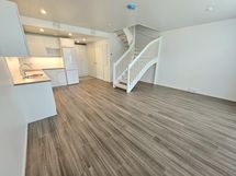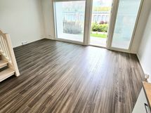 Asunnossa on Keskon laatat ja lattiat, kotimainen Topi-keittiö. Ihanat sävyt, olohuoneessa suuret ikkunat lattiasta lähes kattoon, oma terassi ja ruohopiha. Yläkerrassa on lasiseinäinen sauna ja kauniisti laatoitettu kylpyhuone jossa tyylikäs, tornimainen Harvian kivikiuas. Suurimmassa makuuhuoneessa on ranskalainen parveke.