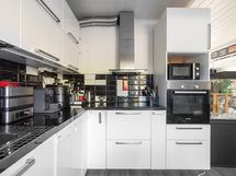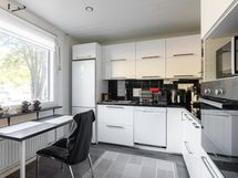 - Valoisa ja remontoitu keittiö. Jääkaappi, keraaminen liesi, erillisuuni- ja taso, liesikupu/-tuuletin, astianpesukone