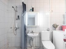 - Kylpyhuone, suihku, peilikaappi, pesukoneliitäntä, kiinteät valaisimet, sähkösauna