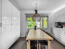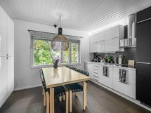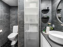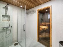 - Kylpyhuoneessa suihku, suihkunurkka. Ikkunallisessa saunassa Harvian sähkökiuas (2022). Erillinen tyylikäs wc, jossa peili, pesuallas, allaskaapisto, kylpyhuonekaapisto. Wc remontoitu v.2021. Kodinhoitohuoneessa runsaasti säilytystilaa, pesuallas, pesukoneliitäntä, kuivauskaappi. Kodinhoitohuoneesta käynti ulos.