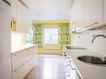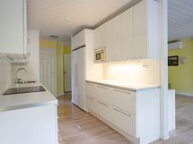 - Keittiön varusteet: Jääkaappi, mikroaaltouuni, erillinen pakastin, liesituuletin, erillisuuni, astianpesukone, kiinteät valaisimet ja liesi. Liesi: Keraaminen liesi. Työtason materiaali: Laminaatti. Keittiö remontoitu kokonaisuudessaan v.2011.