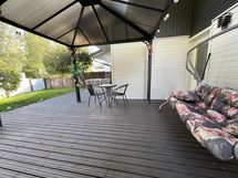 ⛱️ Takapihalle on ostettu katos vuonna 2022, jonka jättämisestä ostajalle voidaan neuvotella