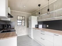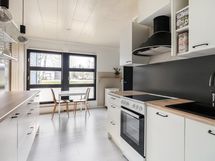- Remontoitu keittiö. Jääkaappi/pakastin, astianpesukone, astianpesukone, keraaminen liesi, liesikupu/-tuuletin, seinän paneelitehoste