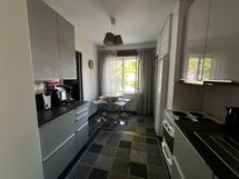 - Tilaa isolle ruokapöydälle, ikkunallinen valoisa keittiö. Paljon kaappitilaa, Paljon työskentelytilaa, Terästasot, Sähköliesi, Liesituuletin, Liesikupu, Jää-pakastinkaappi