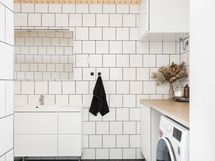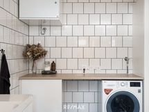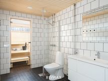 - Pesutilojen kuvaus: Lattialämmitys, suihku, suihkuseinä, valopeili, wc-istuin, allaskaappi, bidee, pesukoneliitäntä, taso, kaappi, ilmanvaihtokone. Erillisten WC:n lukumäärä: 1. Erillisen WC:n kuvaus: Lattialämmitys, valopeili, wc-istuin, allaskaappi, bidee.