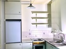 - Keittiön varusteet: Liesi ja jääkaappi. Liesi: Valurautaliesi. Työtason materiaali: Laminaatti. Välttäväkuntoinen keittokomero.