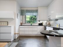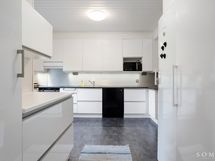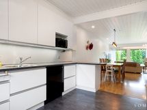 - Liesi: induktio. Työtasot: kivi, laminaatti. Kylmäsäilytys: jääkaappi, pakastin. Varustus: astianpesukone, kiinteät valaisimet, liesituuletin / hormi.