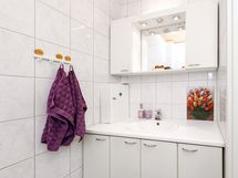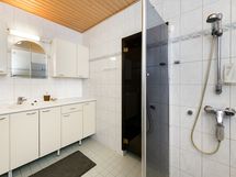 - Pesutilojen kuvaus: Pesuhuone/khh: suihku, suihkuseinä, pyykinpesukoneliitäntä, kaapistot, peili, pesuallas, allaskaapit. Lattialämmitys. Erillisen WC:n kuvaus: Varustus: wc-istuin, käsisuihku, pesuallas, allaskaapit, peili ja kaapistot, lattialämmitys.