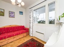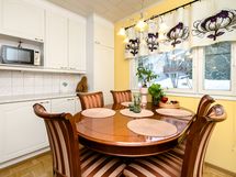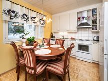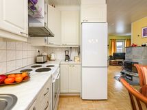 - Hyvin kaapistotilaa. Varustus: jääkaappipakastin, liesi, liesitituuletin, astianpesukone. Lattia parkettia.