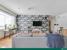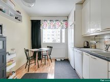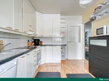 - Jääkaappi/pakastin, astianpesukone, sähköliesi, liesituuletin. Lattia: Laminaatti. Seinät: Maalattu