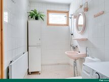 - Kylpyhuone, suihku, pesukoneliitäntä, kylpyhuonekaapisto, kiinteät valaisimet, erillinen wc, sekä wc istuin pesuhuoneessa, sauna. Lattia: Laatta. Seinät: laatta
