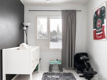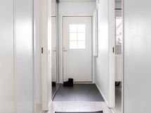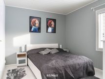 Kaksi makuuhuonetta ovat omissa nurkissaan. Toisesta on käynti vaatehuoneeseen, ja säilytystilaa löytyy lisäksi kaapistoista, lämmitetystä ulkovarastosta sekä eteisen peililiukuovikaapistosta. Jokaiselle tavaralle on oma paikkansa.