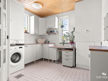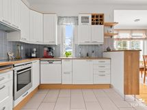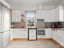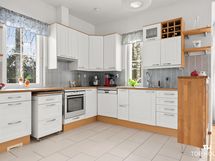 Liesi: keraaminen, erillisuuni. Työtasot: puu, laminaatti. Kylmäsäilytys: jääkaappi/pakastin. Varustus: mikroaaltouuni, astianpesukone, kiinteät valaisimet, liesituuletin / hormi.