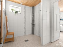 Varustus: lattialämmitys, suihku. Varustus: kylpyamme.