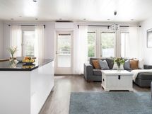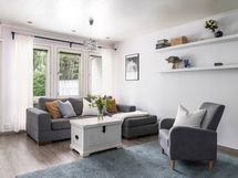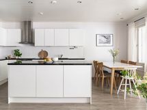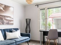 - Avokeittiö, jossa on suuri saareke ja runsaasti sekä kaappi- että laskutilaa. Koko keittiö on pintaremontoitu 2012.