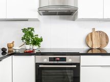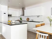 Varustus: jääkaappi, pakastin, induktio/sähköliesi (2021), uuni (2024), liesituuletin, astianpesukone (2019). Työtasot kivi. Seinissä kaakeli ja maali, lattiassa laminaatti