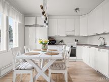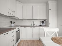 - Liesi: erillisuuni. Työtasot: laminaatti. Kylmäsäilytys: jääkaappi, pakastin. Varustus: astianpesukone, kiinteät valaisimet, liesituuletin / hormi.