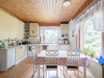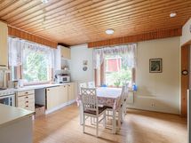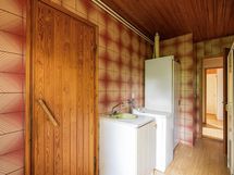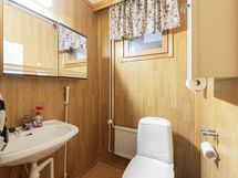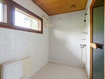 Kylpyhuone, sähkösauna, erillinen wc, suihku, pesukoneliitäntä. Lattia: laatta, khh ja wc muovi. Seinät: Laatta, khh ja wc muovi