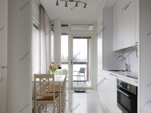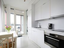 - Keittiön varusteet: Jääkaappipakastin, erillisuuni, liesi, liesituuletin ja mikroaaltouuni (Integroitu lieteen.). Liesi: Keraaminen liesi. Työtason materiaali: Laminaatti. Kompakti, moderni avokeittiö.