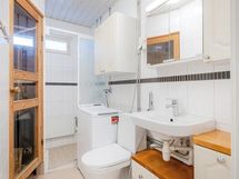 - Pesutilojen varusteet: WC-istuin, suihku, suihkuseinä, pesukoneliitäntä, pesukone, peilikaappi, pesuallas ja bidee-suihku.
