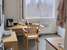 - Jääkaappi/pakastin (2022), sähköliesi (2022), astianpesukoneliitäntä, astianpesukone, kaapistot . Lattia: Muovi