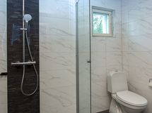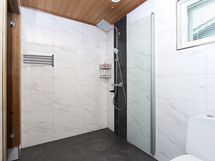 - Pesutilojen varusteet: WC-istuin, suihku, suihkuseinä ja lattialämmitys. Erillisten WC:n lukumäärä: 1. Erillisen WC:n varusteet: WC-istuin, pesuallas, peili, bidee-suihku, allaskaappi ja kaapistoja.