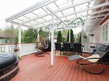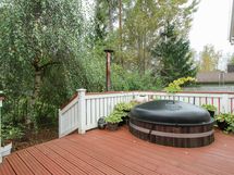 - Iso osittain katettu terassi (n. 35 m2), jossa puilla lämmitettävä palju.