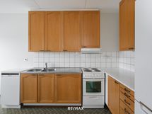 - Keittiön varusteet: Jääkaappipakastin, liesi, liesituuletin ja astianpesukone. Liesi: Sähköhella.