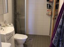 - Suihku, Suihkuseinä, Pesukonevalmius, Peilikaappi, Allaskaappi, Laattaseinä, Lattialämmitys, Laattalattia