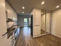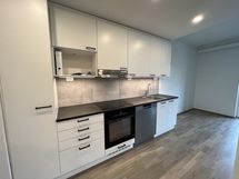 Liesi: erillisuuni, liesitaso. Työtasot: laminaatti. Kylmäsäilytys: jääkaappi/pakastin. Varustus: liesituuletin, astianpesukone, kiinteät valaisimet.