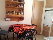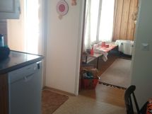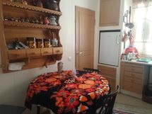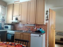 Tilaa isolle ruokapöydälle, Suuri tiskipöytä, Laminaattitasot, Paljon kaappitilaa, Paljon työskentelytilaa, Astianpesukone, Keraaminen liesi, Liesituuletin, Jääkaappi