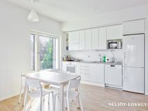 Liesi: induktio, erillisuuni. Työtasot: laminaatti. Kylmäsäilytys: jääkaappi/pakastin. Varustus: liesituuletin, astianpesukone, kiinteät valaisimet.